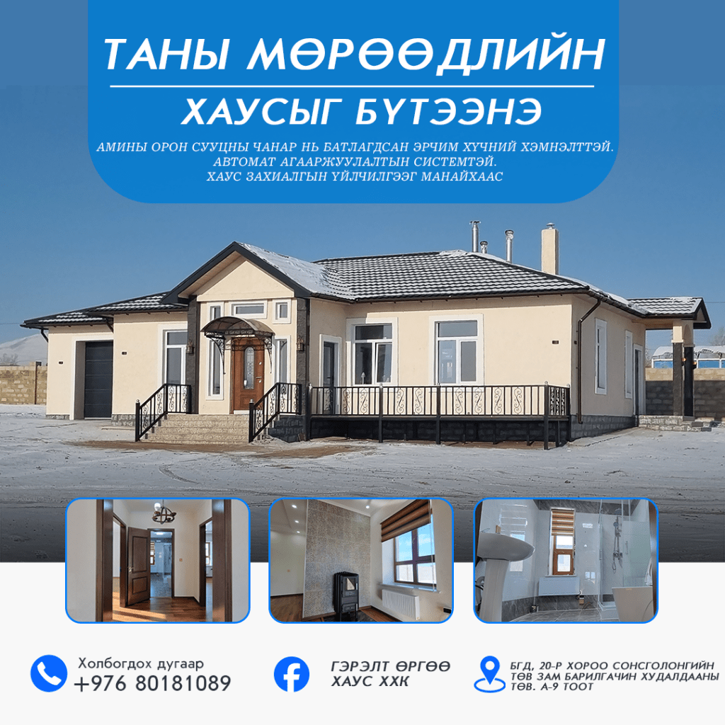 “ГЭРЭЛТ ӨРГӨӨ ХАУС” ХХК нь 2012 онд амины орон сууц барих, засварлах, барилгын засал чимэглэл, гадаад худалдааны чиглэлээр байгуулагдсан. Байгуулагдсан цагаас Улаанбаатар хот болон хөдөө орон нутагт 40 гаруй амины орон сууц хаусыг захиалагчийн шаардлагад нийцүүлэн барьсан байна. Манай компани гүйцэтгэсэн ажил болгондоо 3 жилийн баталгаат хугацаа өгч дээрх хугацаандаа сервис үйлчилгээг бүрэн хариуцан ажилладаг. Бид жилд 5-6 захиалга авдаг бөгөөд захиалагчдын сэтгэл ханамж болон ажлын гүйцэтгэлд анхааран ажилладаг. Чанартай гүйцэтгэл, ирээдүйн амжилт гэсэн зорилго тавин жил бүрийн ажлаа дүгнэдэг.